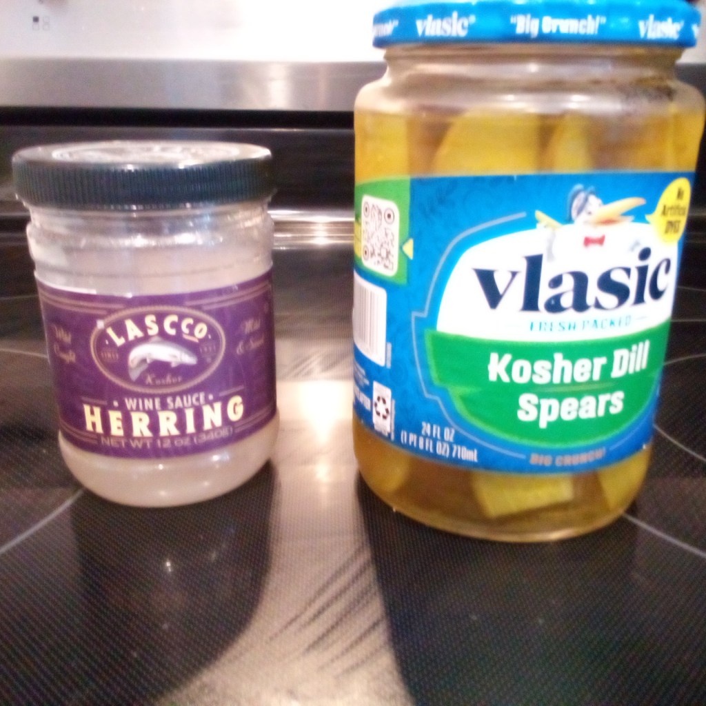 When you buy a brine or a pickled item at the store, look at the list of ingredients. If Vinegar is first on the list of ingredients, it’s a pickle. If Kosher or Sea salt is first on the list, it’s a brine. Here are two examples of true brines, both my favorite snacks — Herring and Kosher Pickles.
