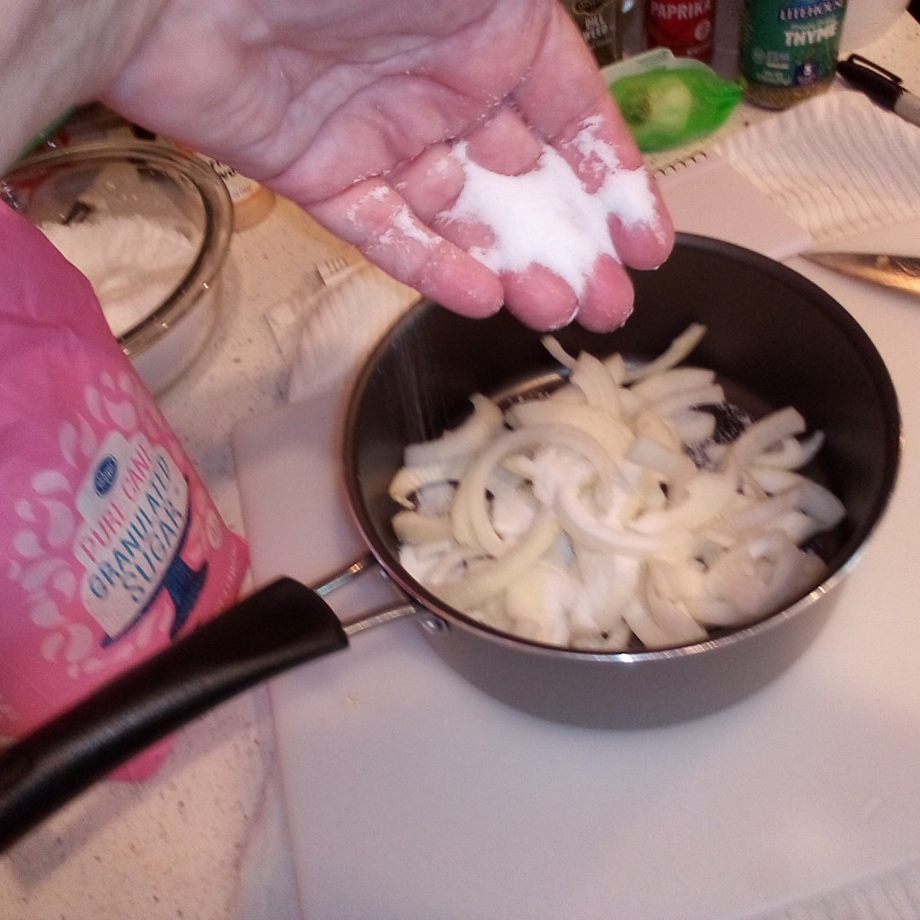Now to finish the pickled onions with vinegar, sugar, peppercorns, a smidge of fresh pressed garlic: