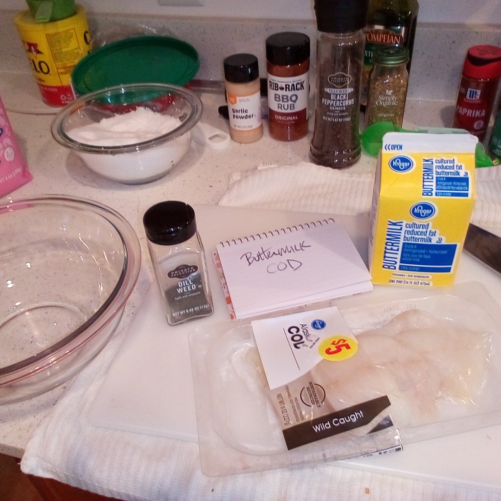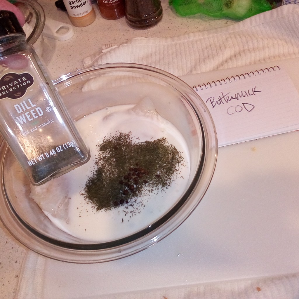 This is the Mise en Place for my overnight marinate of Dill Buttermilk Cod.